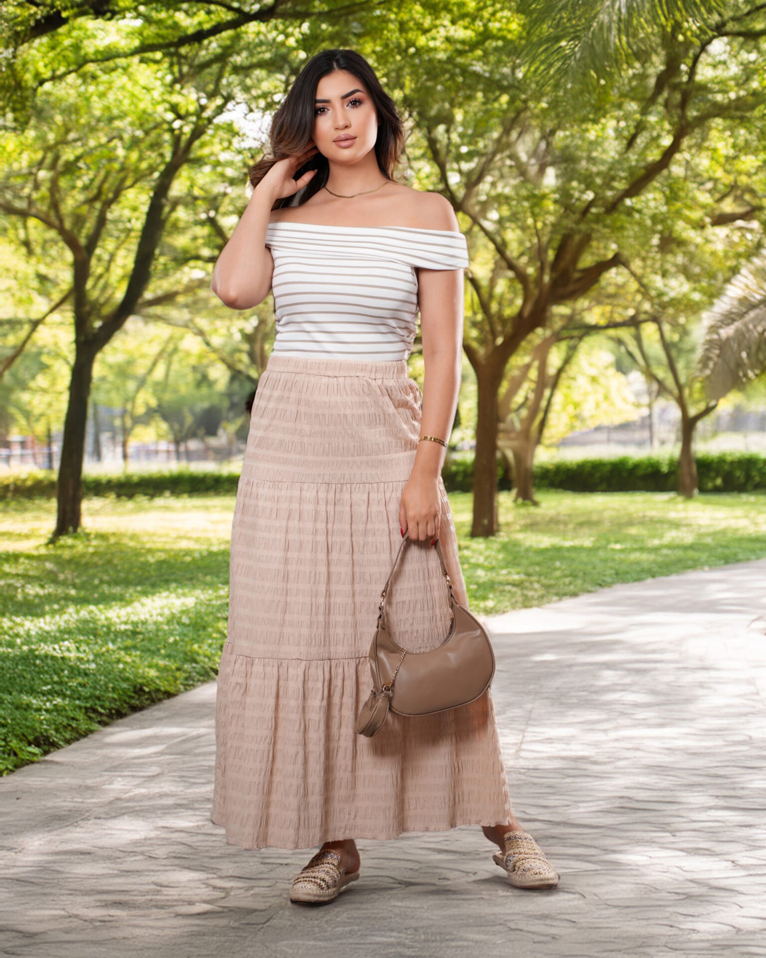 Craquez pour cette jupe longue fluide en bleu ciel, parfaite pour une allure estivale et féminine. Son tissu texturé léger et ses volants discrets ajoutent du mouvement et de la douceur à chaque pas.